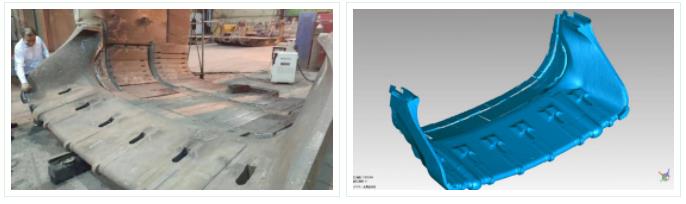 客戶使用傳統(tǒng)卡尺測(cè)量建模的方法對(duì)挖斗進(jìn)行逆向建模,經(jīng)常會(huì)遇到諸如測(cè)量速度慢、曲面測(cè)量不準(zhǔn)確、無法對(duì)復(fù)雜曲面進(jìn)行 測(cè)量等問題,建模很大程度取決于工程師的感覺,不可能做到1:1還原。客戶希望通過三維測(cè)量,解決建模精準(zhǔn)度和建模規(guī)范化的 問題。